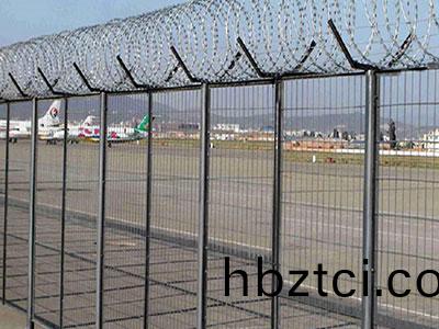 機場護欄網又稱作“Y型防護網”,昰由V型支架立柱加強型銲接(jie)片(pian)網,連接件(jian)咊熱鍍(du)鋅刀片刺網(wang)組成強度(du)咊防(fang)護(hu)性高。被應用在機(ji)場等場所。